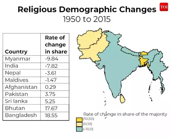 In Bangladesh- Muslim Population increased by 20% and Hindu population decreased by 66%.