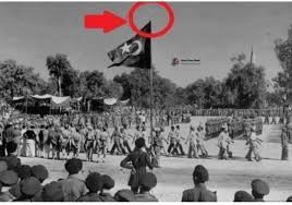 Caption: This Picture was taken on the 16th of August 1947, First Guard of Honour to the Governor General of Pakistan, Mr Muhammad Ali Jinaah, where the Pakistan National flag was mounted on “Panja Hazrat Ghazi Abbas” (پنجہ حضرت غازی عباس), which is referred to as a sacred religious symbol in Shia Islam.